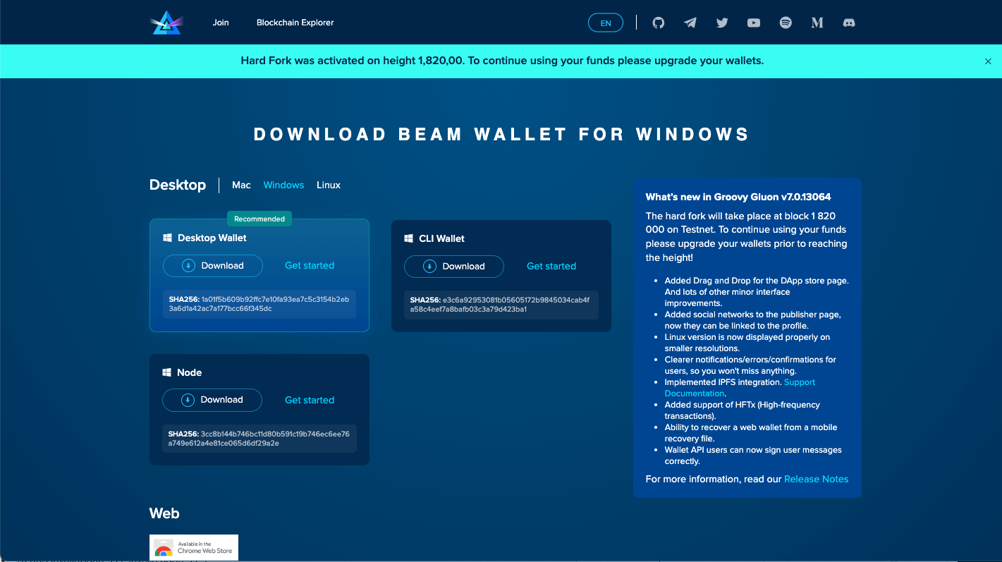 - Your web browser displays an official Beam website by observing that the padlock icon is "locked" on the address bar and checking the certificate.